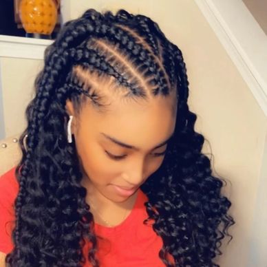 Crochet style kids ages 3-12 with 2-5 Feedin Braids in front and crochet style in back