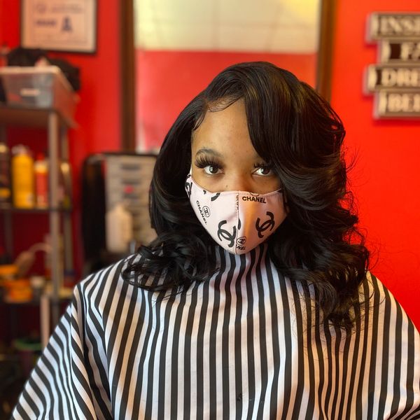 Ear to ear Closure install. No hair left out. Using 2 to 3 bundles of hair. Additional bundles additional charge see Add Ons Must come clean dried and fully detangled shampoo/blowdry is additional.
