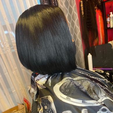 Bob sew in using 2 bundles/packs of hair with minimal leave out. Bob cut with complimentary styling.