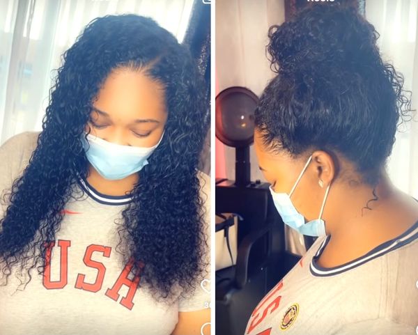 Partial sew-in with minimal hair left out to cover extensions. 2 bundles/packs of hair installed.